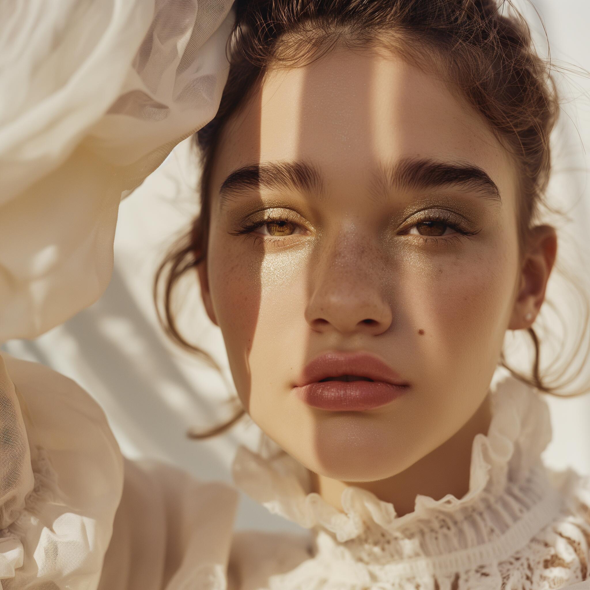 In the embrace of soft whispers, hair dances like petals in the breeze.