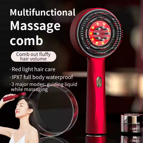 مشط تدليك الاهتزاز الكهربائي العلاج بالضوء الأحمر تدليك نمو الشعر فرشاة فروة الرأس مكافحة تساقط الشعر السائل قضيب الزيت العناية بالشعر